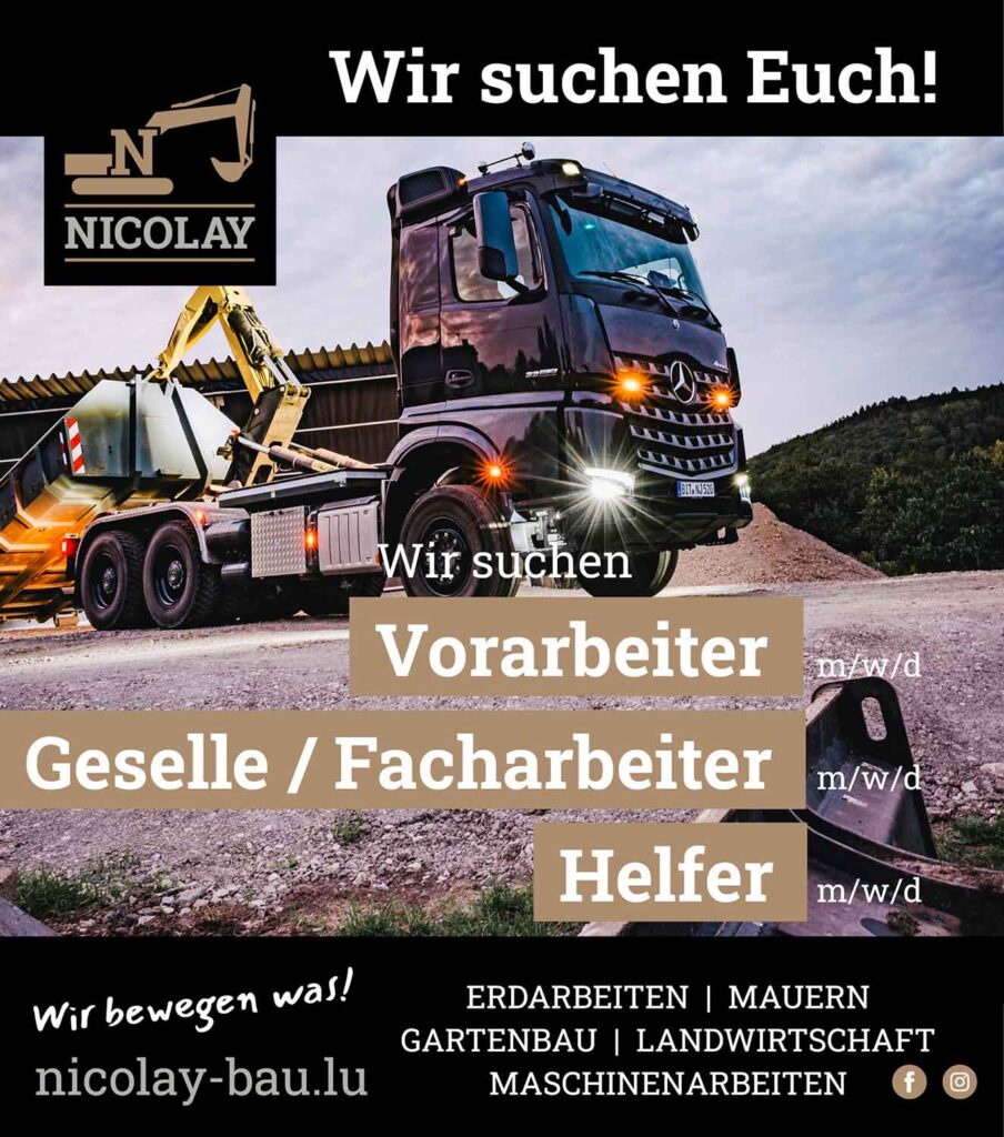 Unser Bauunternehmen entwickelt sich prächtig, und jetzt suchen wir Unterstützung für Luxemburg und Deutschland.
